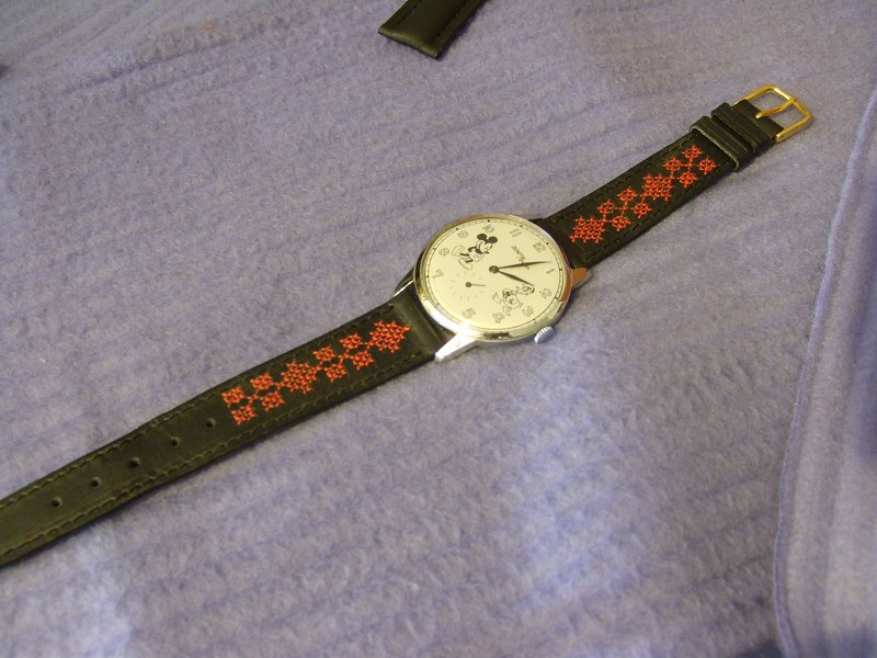 Vintage 60's Silk & Leather / Embroidered leather straps on Vintage Zenith